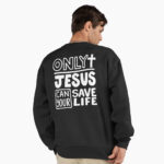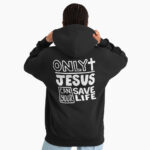 The phrase “Only Jesus Can Save Your Life” references the core of Christianity: Jesus as Savior, Redeemer, and source of eternal life. This message echoes scriptures such as Acts 4:12 and John 14:6, making it a wearable form of evangelism. The visual styling ensures it stands out in urban settings, youth groups, mission trips, worship nights, and everyday environments.