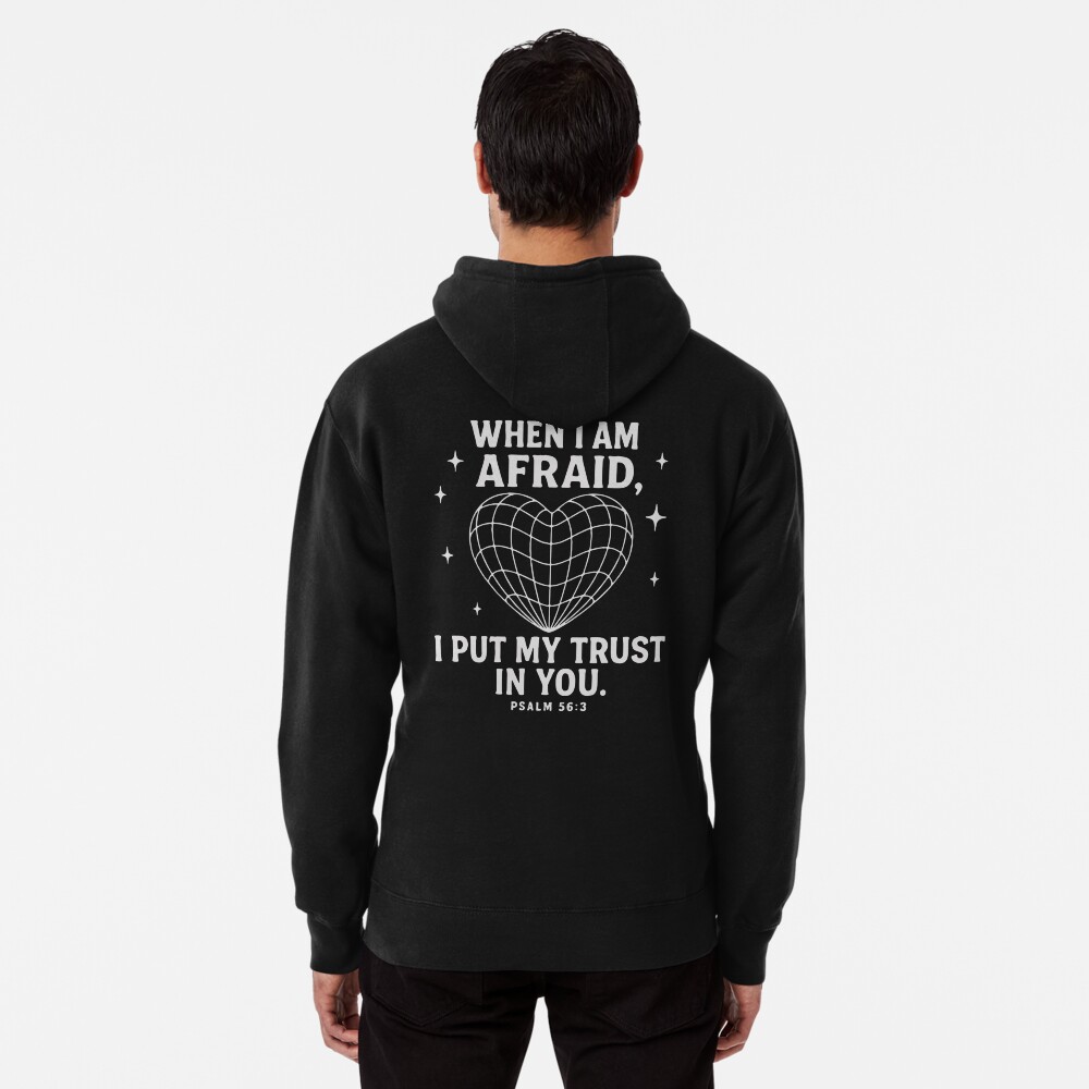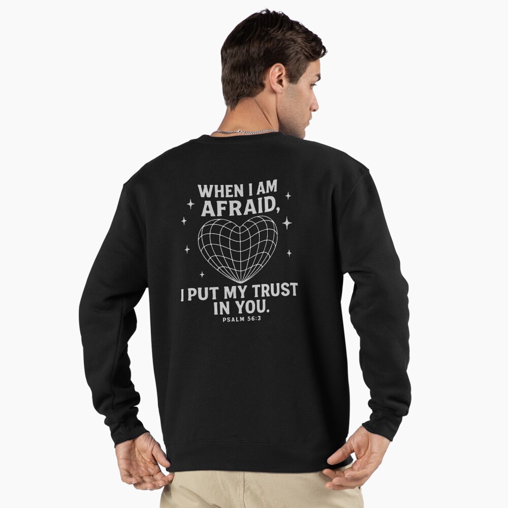 Psalm 56:3 is a declaration of trust born from vulnerability. David, surrounded by fear and danger, chooses confidence in God rather than giving in to anxiety. This verse reminds us that faith isn’t the absence of fear—it’s choosing to trust God in the middle of it.The design reflects this truth with simplicity and emotional clarity. It invites the wearer and those who see it to remember that God is present, faithful, and attentive in moments of fear. Whether dealing with stress, transitions, uncertainty, or spiritual battles, this message speaks peace directly to the heart.Wearing this verse turns your clothing into encouragement—both for yourself and for everyone around you.