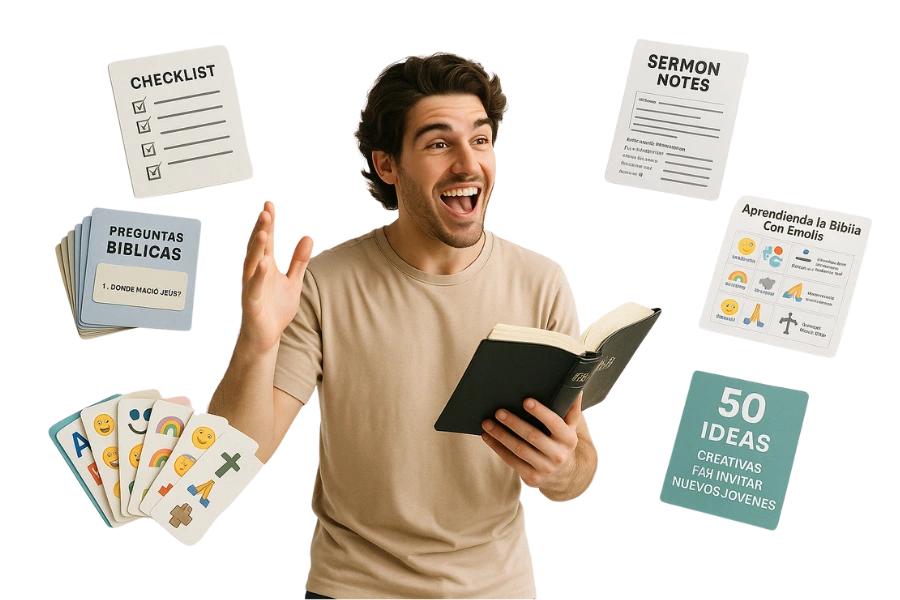 Diseñado para inspirar, enseñar y conectar con el corazón del Evangelio, este pack es tu aliado para lograr reuniones impactantes, organizadas y llenas de propósito.